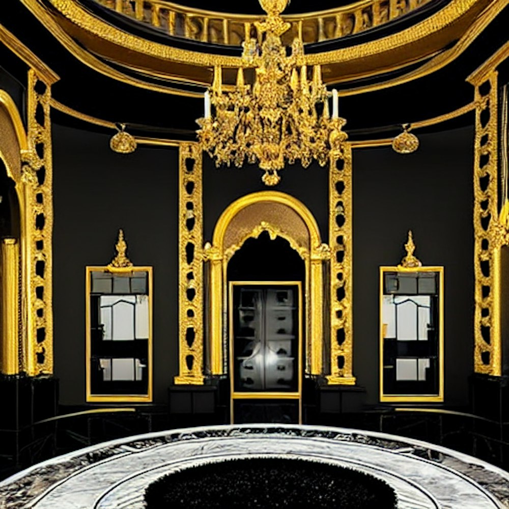hyper realistic marble palace with a black piano and an elegant man looking at it