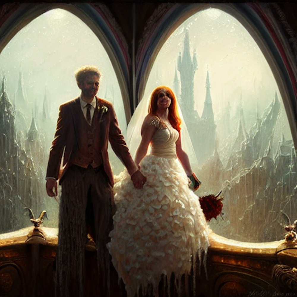 wedding, man and woman, oil, high resolution, 4k, details, orchestra, landscapes, beautiful,