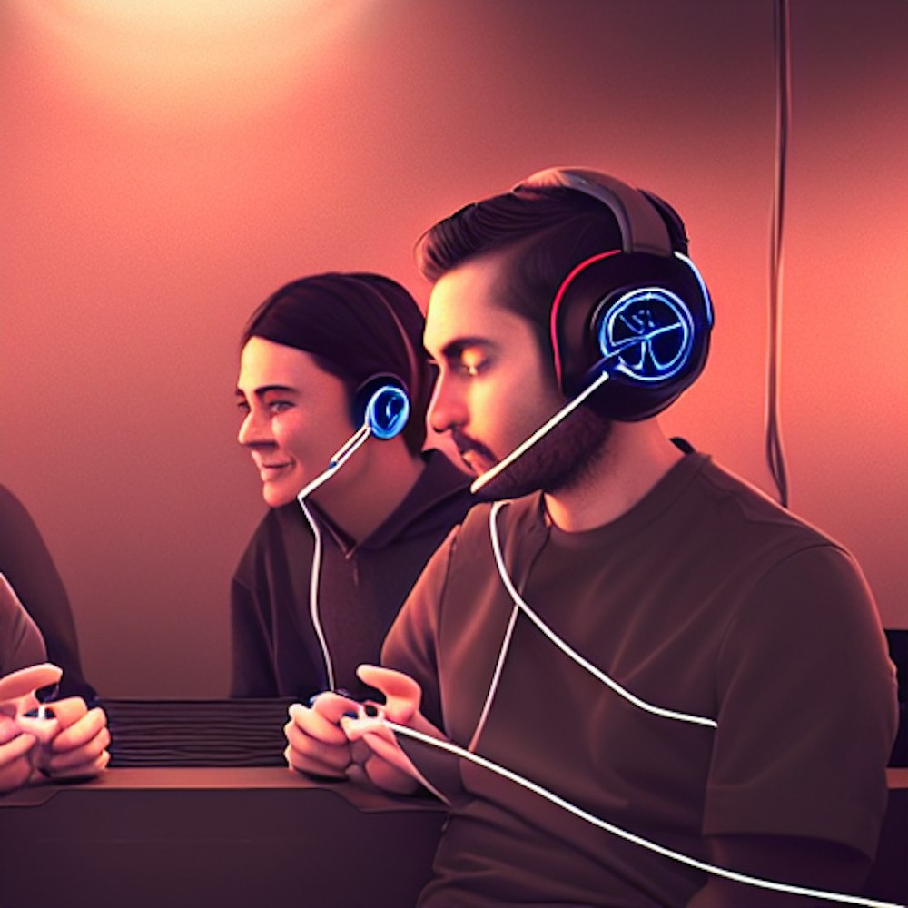 Two people sharing headphones