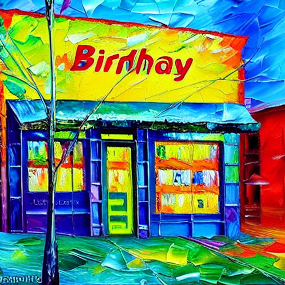 birthday store front with car