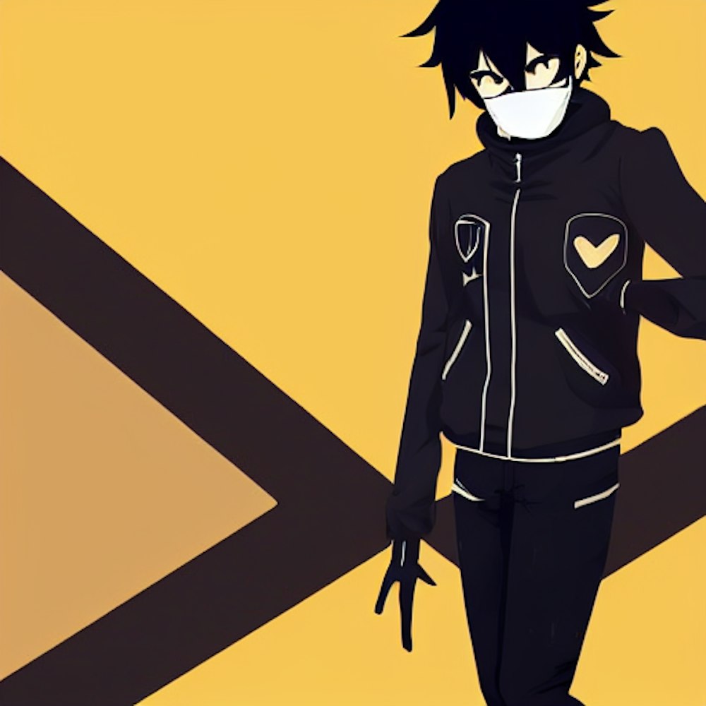 male, anime, wearing mask, black hair, retro, black jacket, wrench, watch dog, cinematic