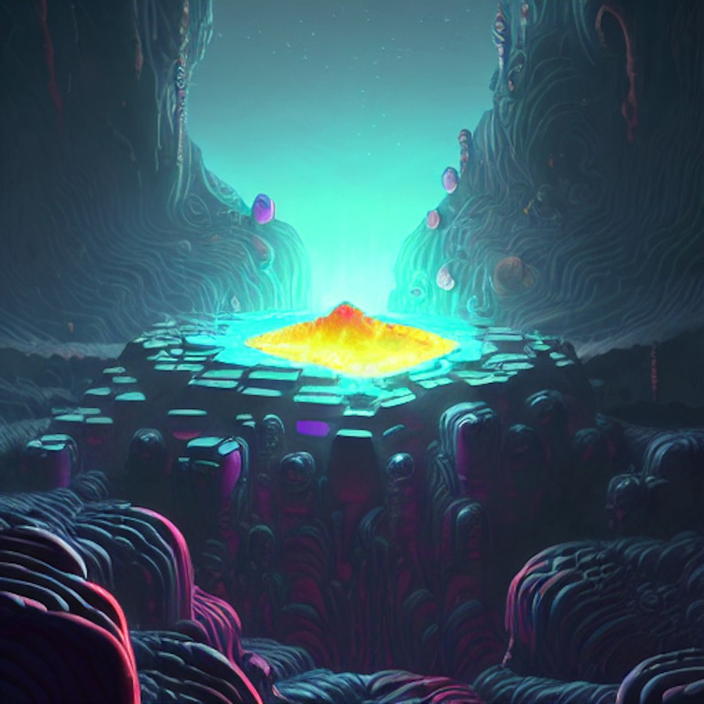 Epic ancient arcane glowing eldritch cube artifact made of bismuth in a lava cavern world, in the style of jordan grimmer and victo ngai, orange-black lighting, subsurface scattering!!!,boy