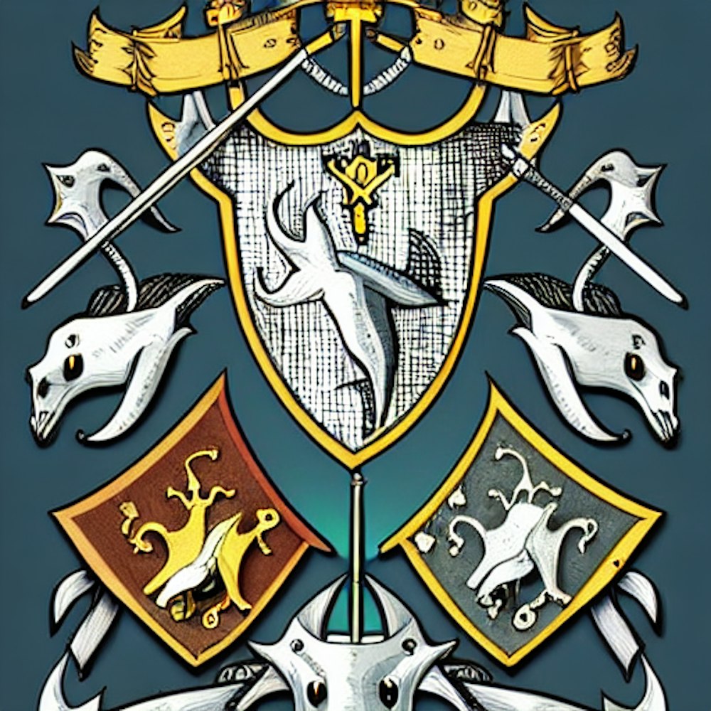 album cover art, narwhals coat of arms, medieval heraldry, antique, hyper detailed