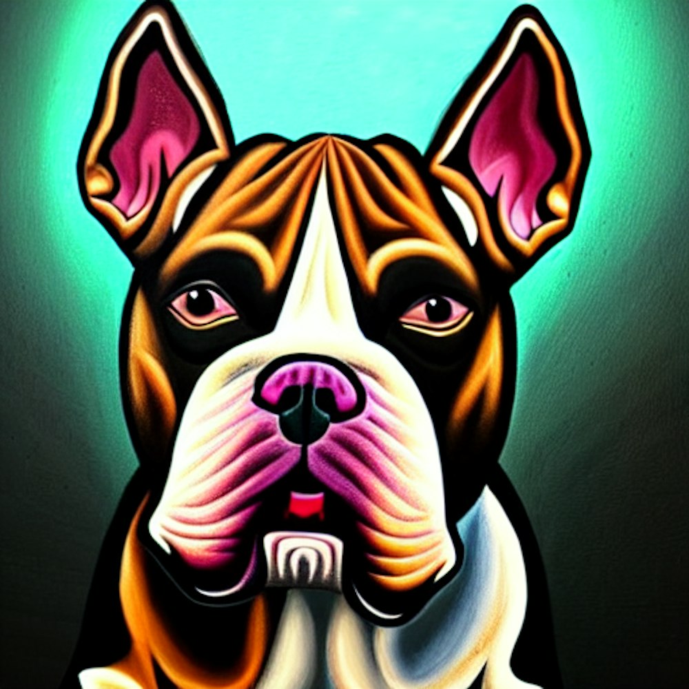 Painting of pit bull dog Chicano style