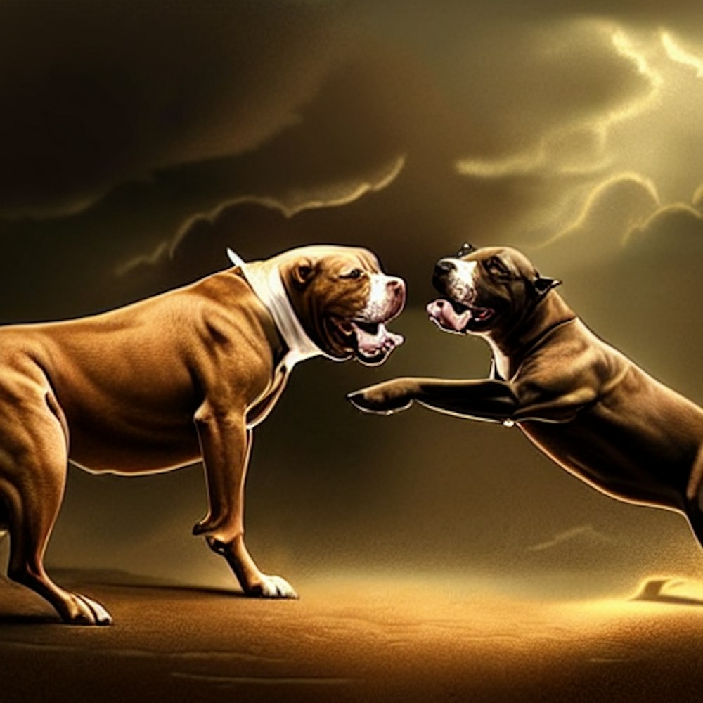 painting of two pit bulls fighting