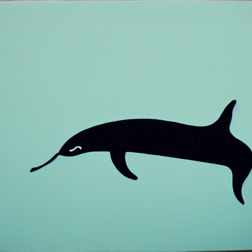 a paint of a narwhal whale coming out of the water, showing the tusk of it's nose.