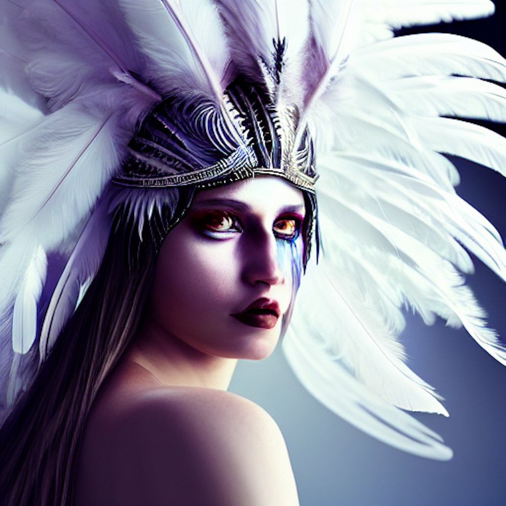 half woman half eagle fantastical fusion full skin covered with white feathers, insane detailed,