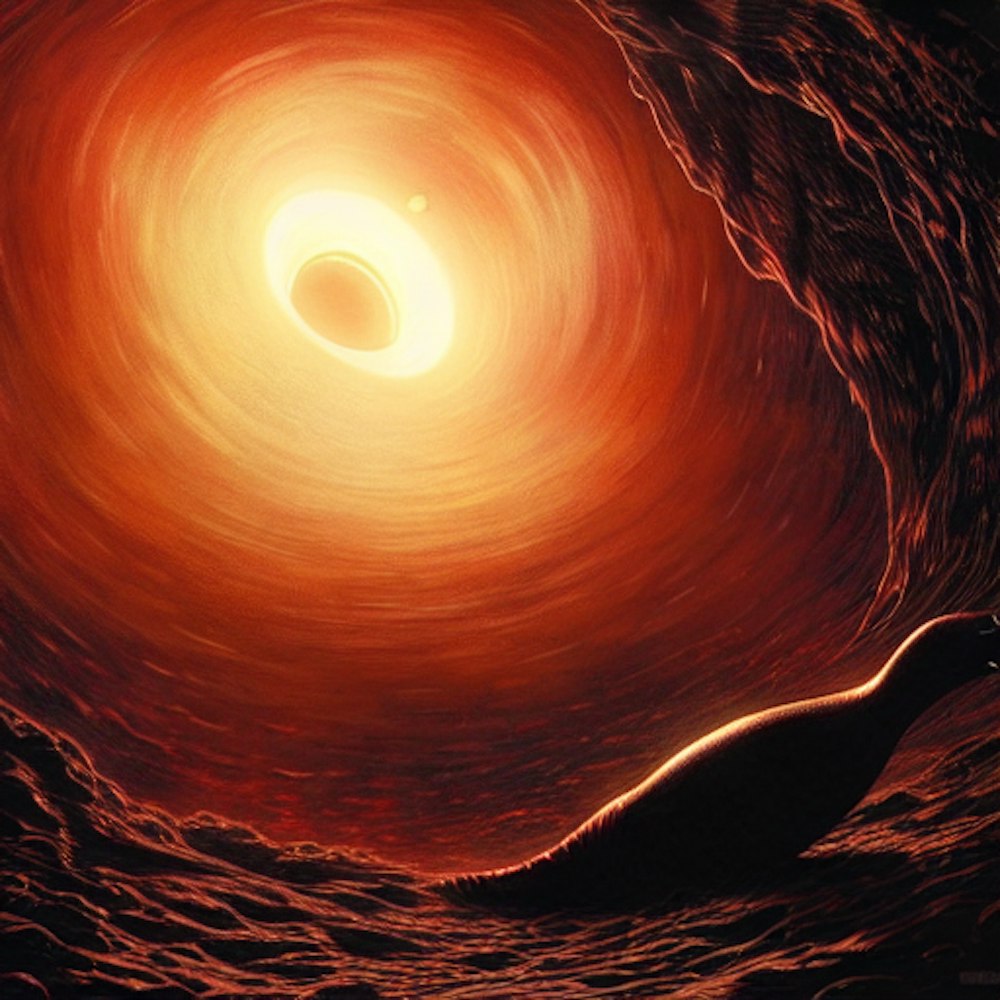 ultra realistic 4k Super massive black hole swallowing a rubber duck in a suit and tie