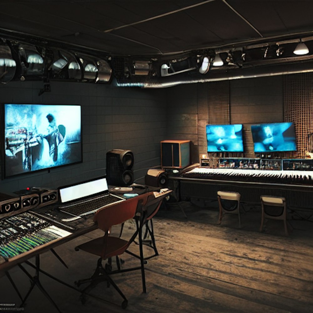 vintage hip hop production studio, Hyper Detail, 8K, HD, Octane Rendering, Unreal Engine