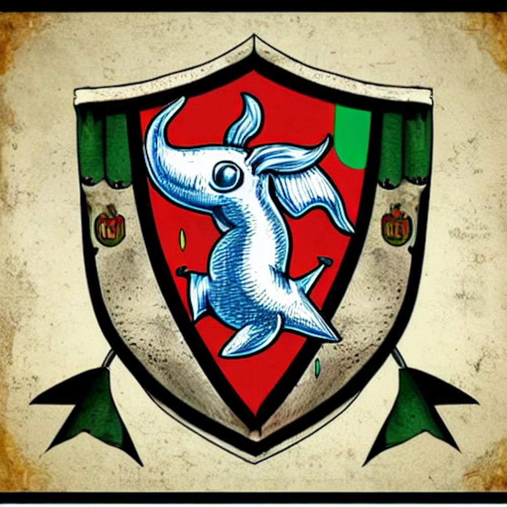 album cover art, narwhals coat of arms, medieval heraldry, antique, hyper detailed