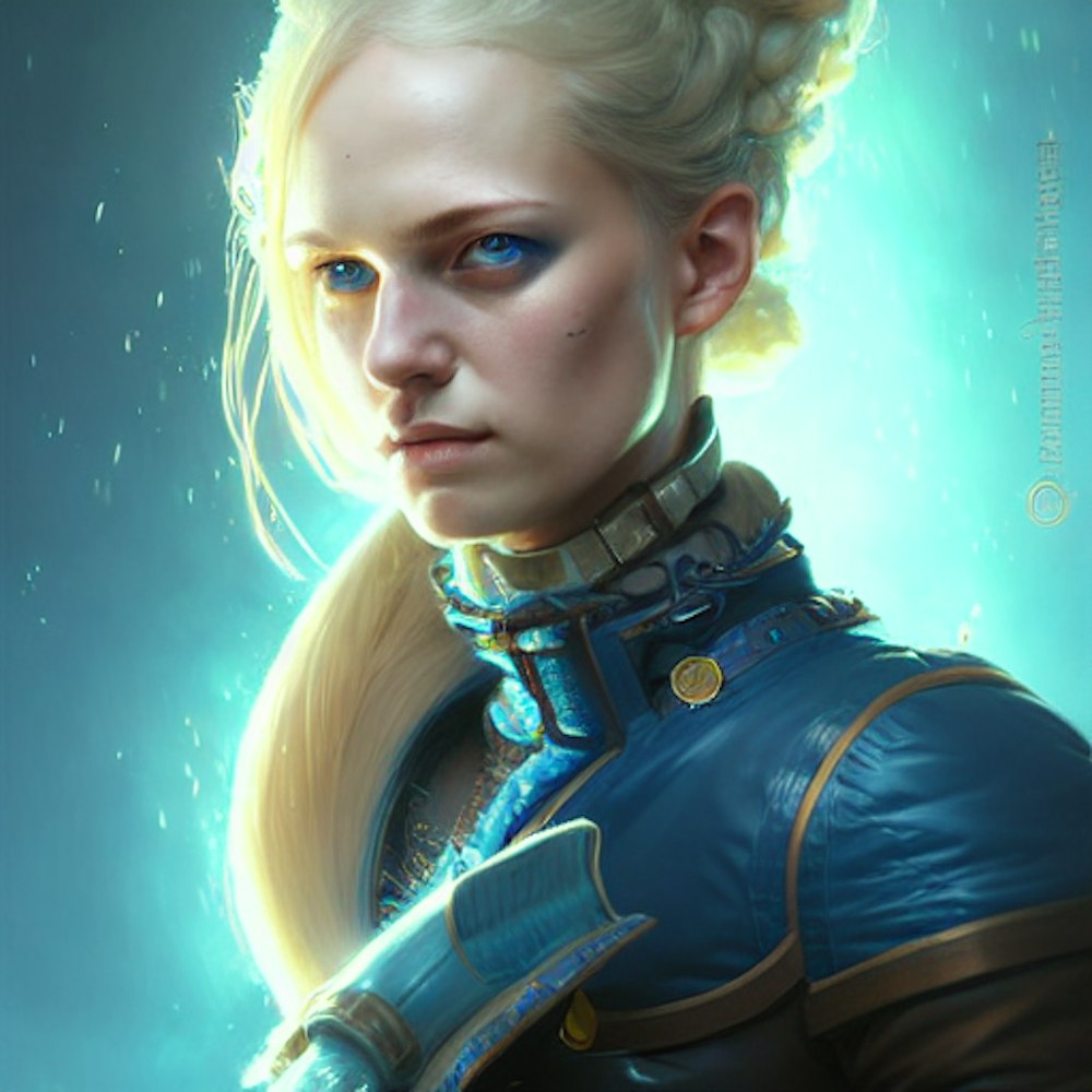 Hyper Detailed Female Artificer, Fantasy Steampunk Inventor, Masterpiece Portrait, Blonde Hair in Pony Tail, Beautiful Blue Eyes