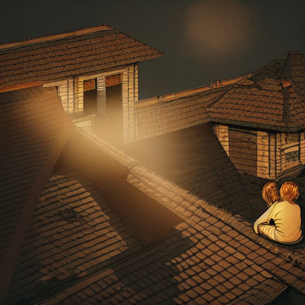 Two people Sitting on a roof