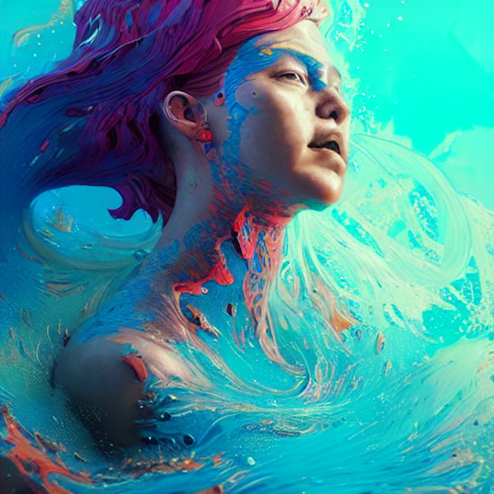 Insanely detailed photographic portrait of a brightly-colored water elemental ocean waves women bare back, an intricate and hyperdetailed painting by Ismail Inceoglu, Huang Guangjian CGSociety, ZBrush Central, fantasy art, album cover art