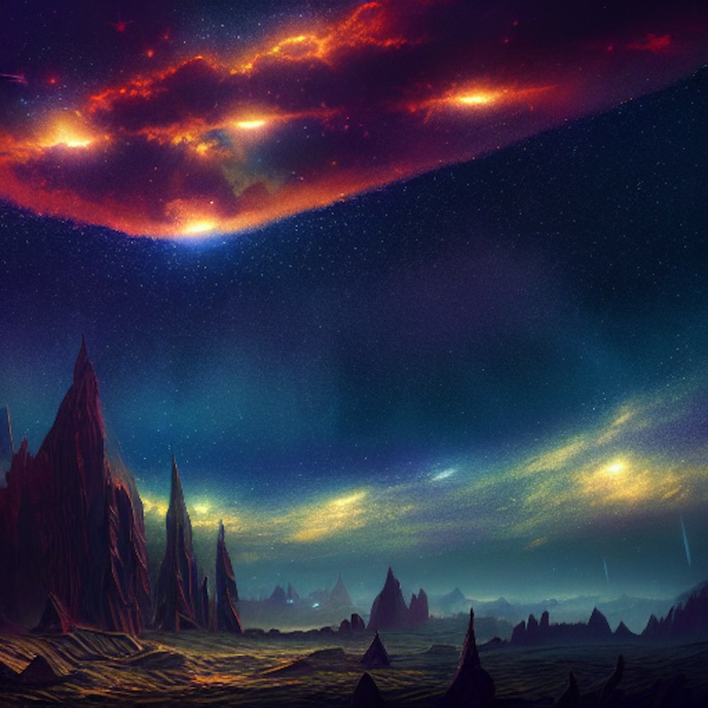 starry sky, detailed matte painting, deep color, fantastical, intricate complementary colors, 8k resolution trending on Artstation Unreal Engine 5 a masterpiece, dark fantasy concept, dynamic lighting