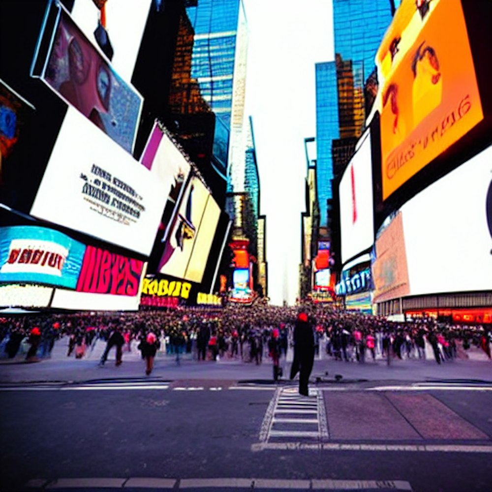 Black man standing in the center of Times Square