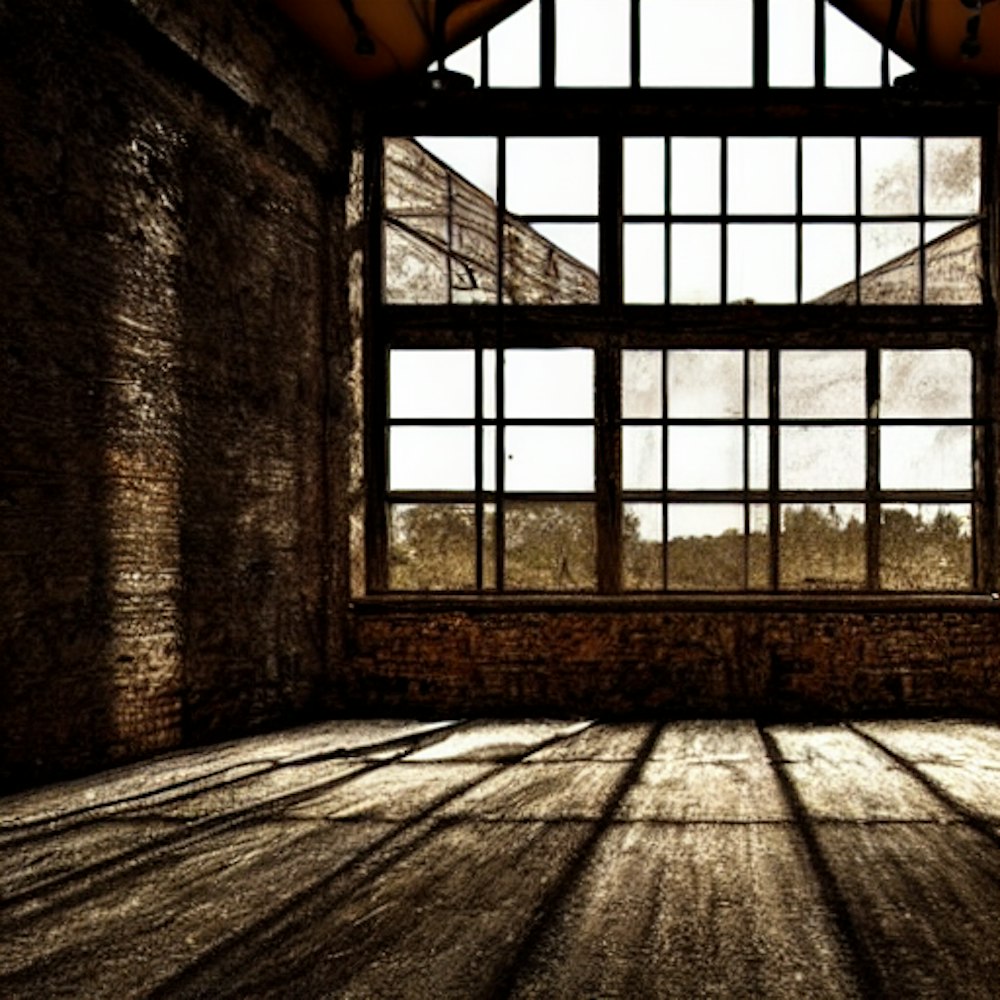 old dark dusty barn with lot of rusty tools on walls closed windows