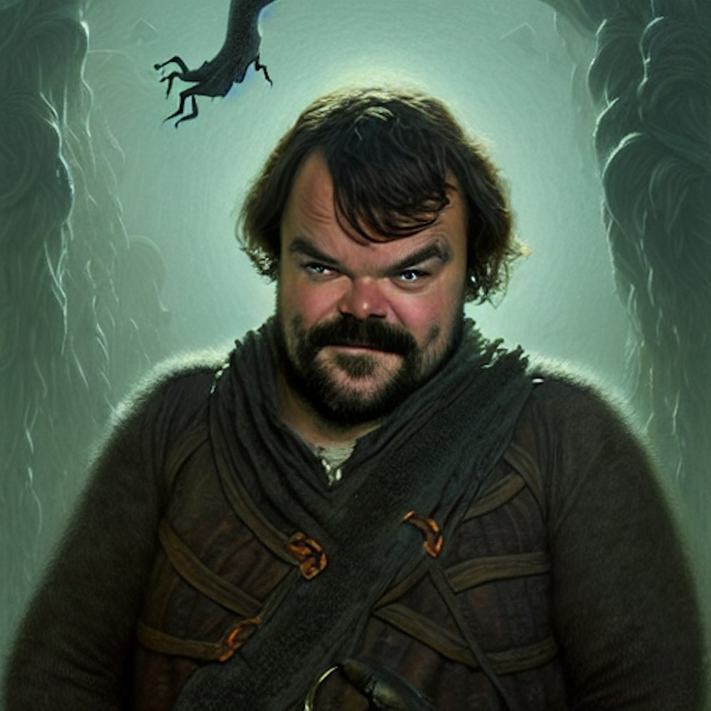 a portrait of actor Jack Black, fantasy character portrait, Graveyard landscape, ultra realistic, cinematic, concept art, wide angle, intricate details, hologram, highly detailed by greg rutkowski, aaron horkey, gaston bussiere