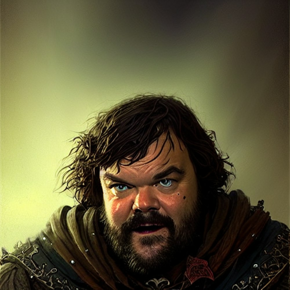 a portrait of actor Jack Black, fantasy character portrait, Graveyard landscape, ultra realistic, cinematic, concept art, wide angle, intricate details, hologram, highly detailed by greg rutkowski, aaron horkey, gaston bussiere