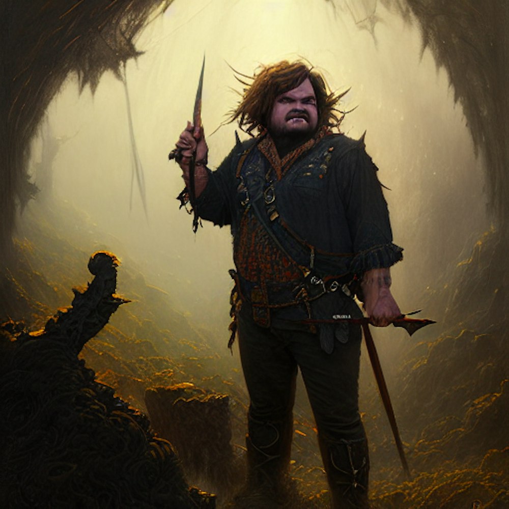 a portrait of actor Jack Black, fantasy character portrait, Graveyard landscape, ultra realistic, cinematic, concept art, wide angle, intricate details, hologram, highly detailed by greg rutkowski, aaron horkey, gaston bussiere