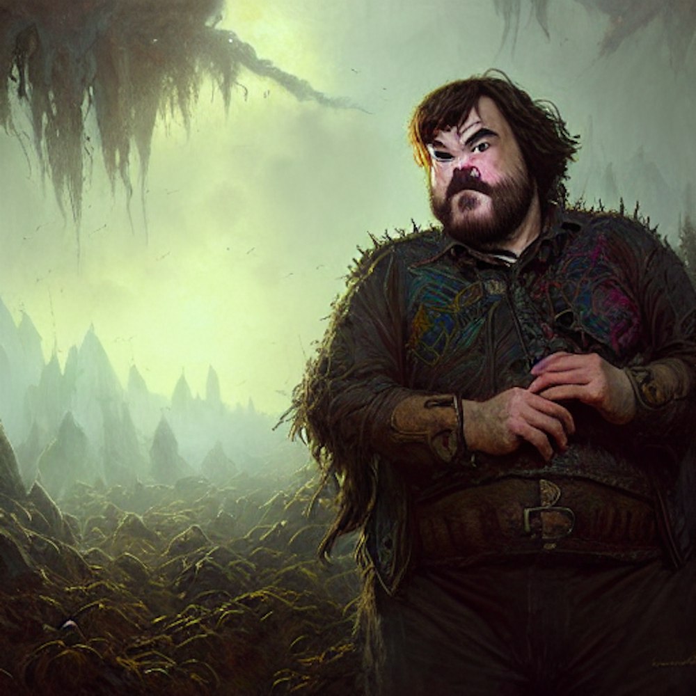 a portrait of actor Jack Black, fantasy character portrait, Graveyard landscape, ultra realistic, cinematic, concept art, wide angle, intricate details, hologram, highly detailed by greg rutkowski, aaron horkey, gaston bussiere