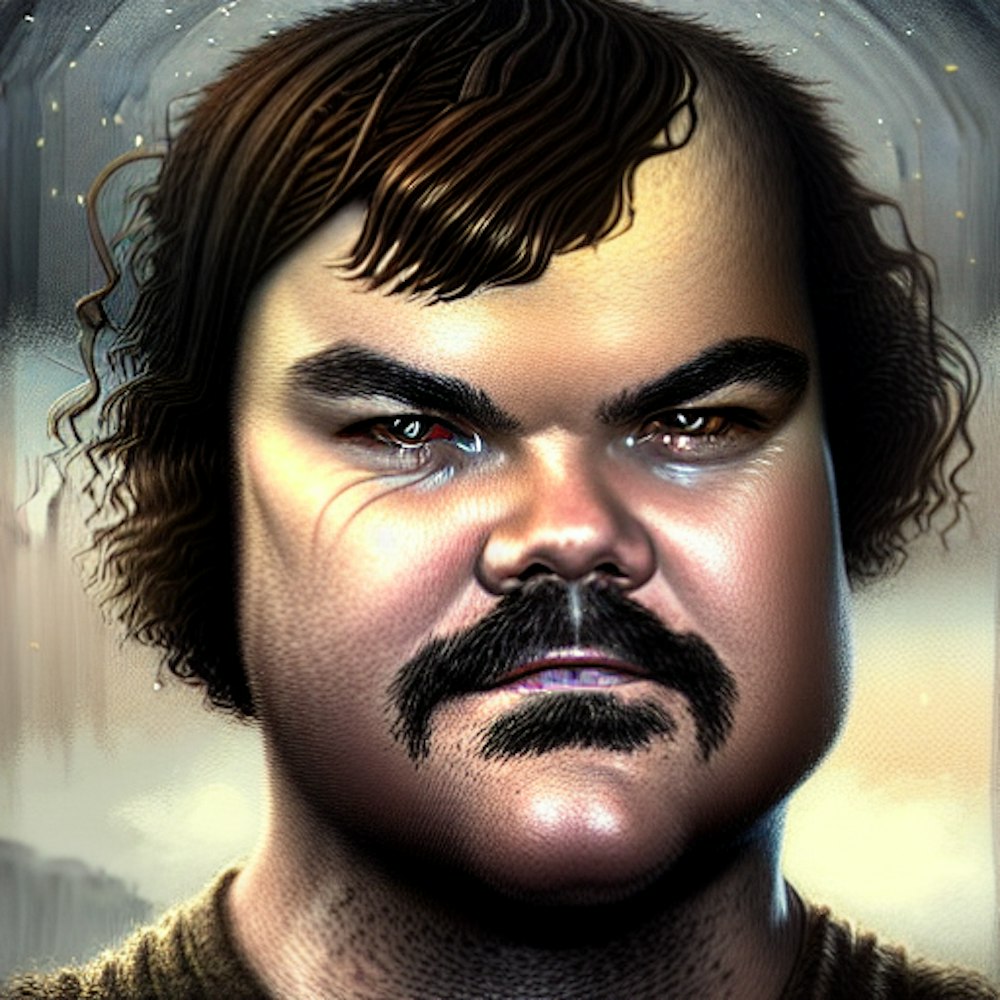 a portrait of actor Jack Black, fantasy character portrait, Graveyard landscape, ultra realistic, cinematic, concept art, wide angle, intricate details, hologram, highly detailed by greg rutkowski, aaron horkey, gaston bussiere