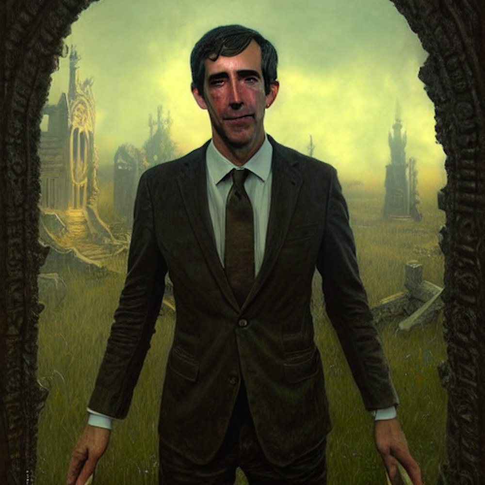 a portrait of politician Beto, fantasy character portrait, Graveyard landscape, ultra realistic, cinematic, concept art, wide angle, intricate details, hologram, highly detailed by greg rutkowski, aaron horkey, gaston bussiere