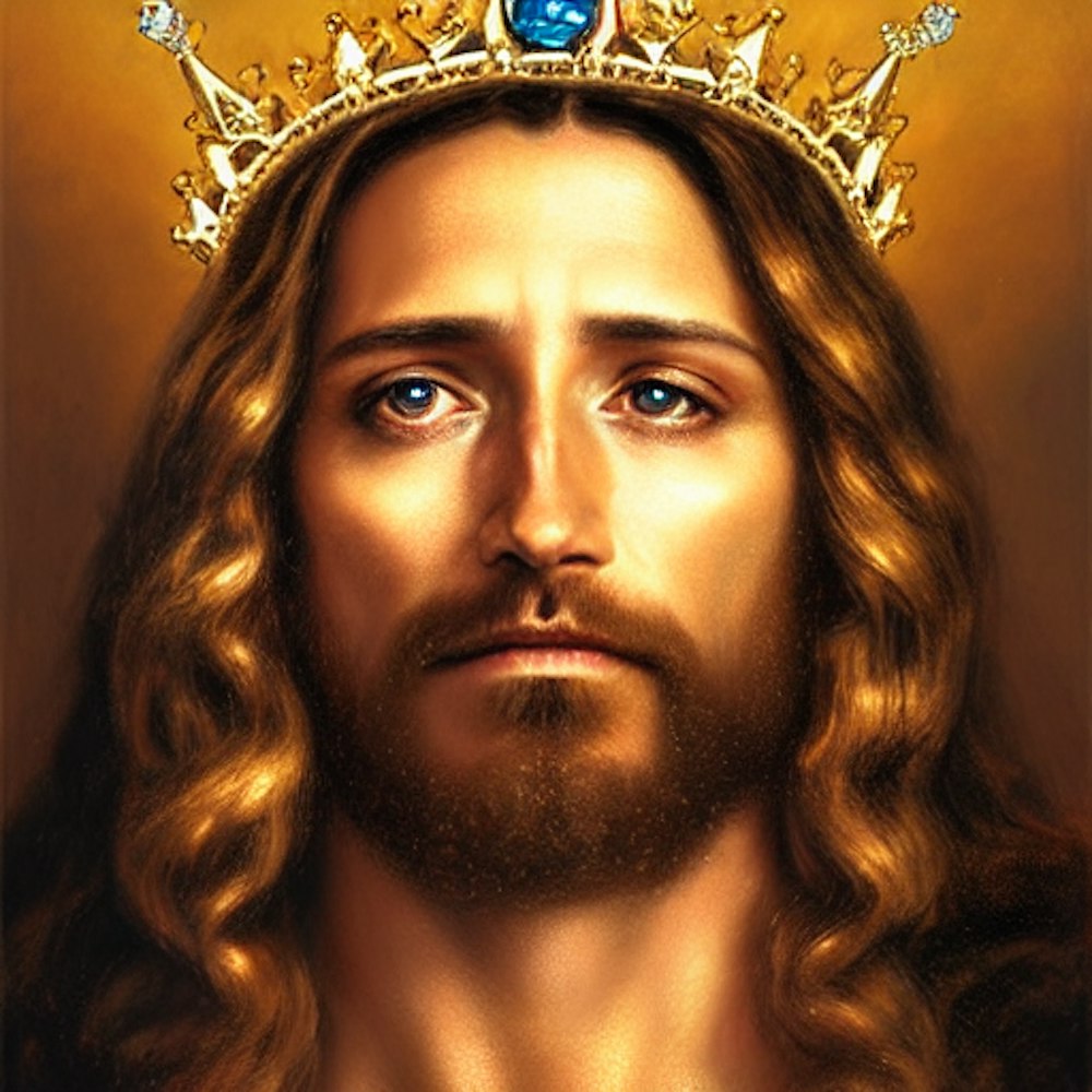 a portrait of Jesus Christ crying, wearing a crown of gold and diamonds fantasy character portrait, Heaven landscape, ultra-realistic, cinematic, concept art, wide angle, intricate details, hologram, highly detailed by greg rutkowski, aaron horkey, gaston