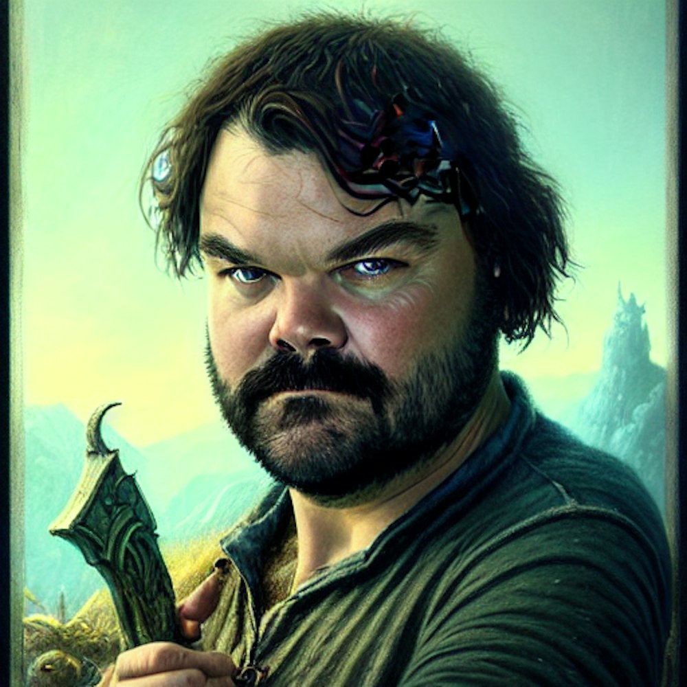 a portrait of actor Jack Black, fantasy character portrait, Graveyard landscape, ultra realistic, cinematic, concept art, wide angle, intricate details, hologram, highly detailed by greg rutkowski, aaron horkey, gaston bussiere