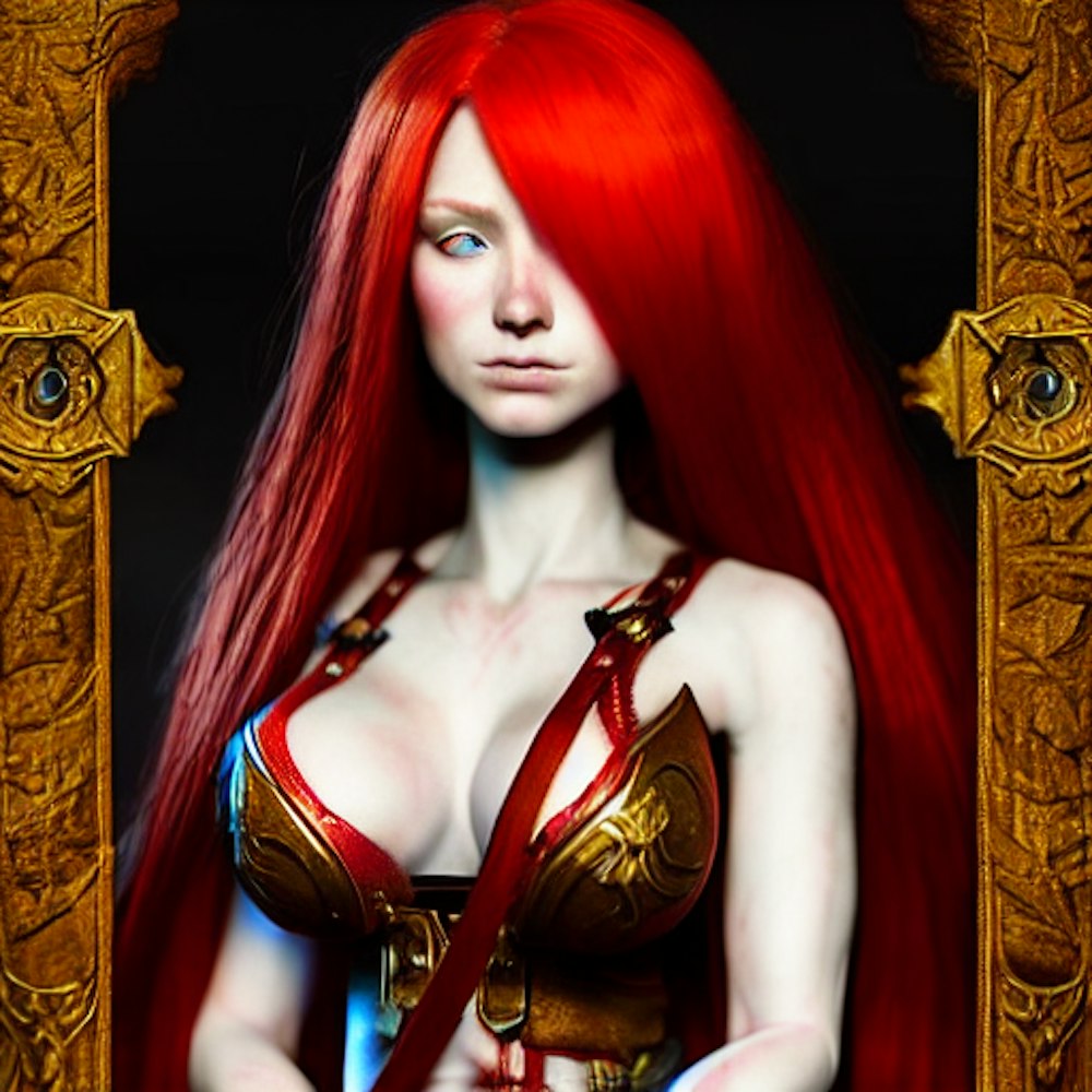 red-haired maiden with staffs
