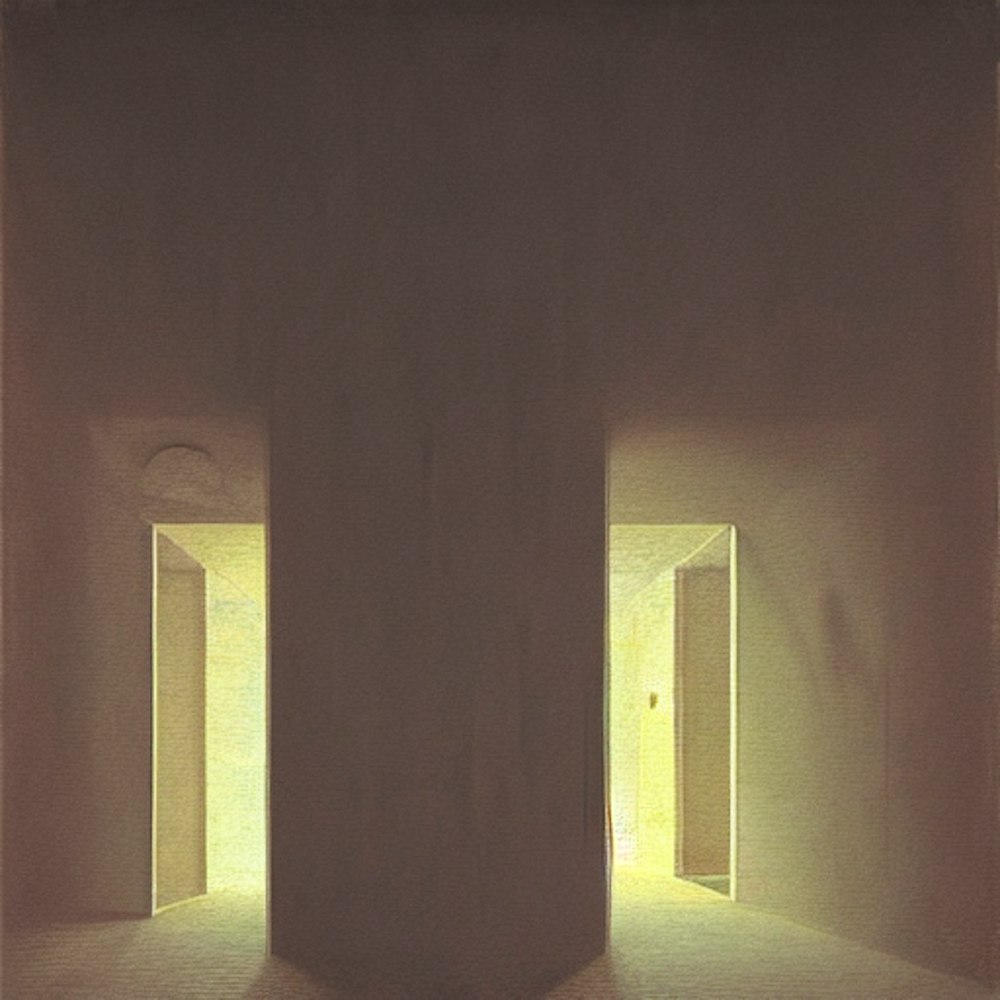 Infinite empty apartment complex, night, by Dario Puggioni, Bom.K, Ally Burke, Zdzislaw Beksinski