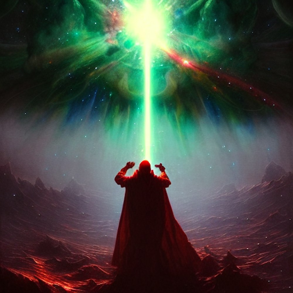 Evil clown of creation, heaven, surreal, space, light rays, galaxy, space, stars, comet, horror Gustave Doré Greg Rutkowski,
