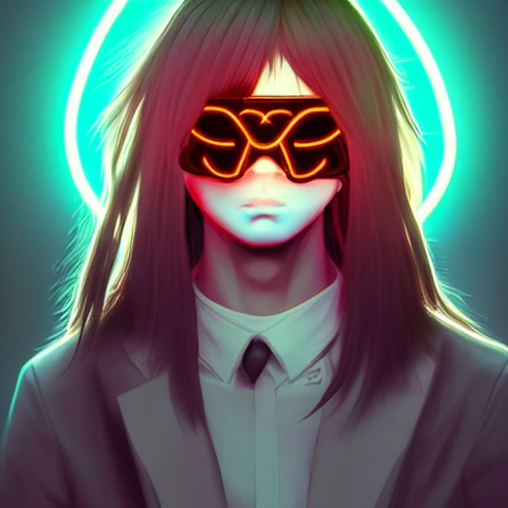 Man, Eye patch, long hair, mask, anime, neon detailed