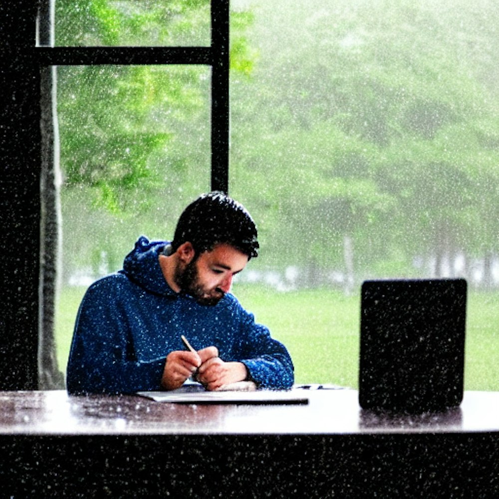 Person studying in rainy weather