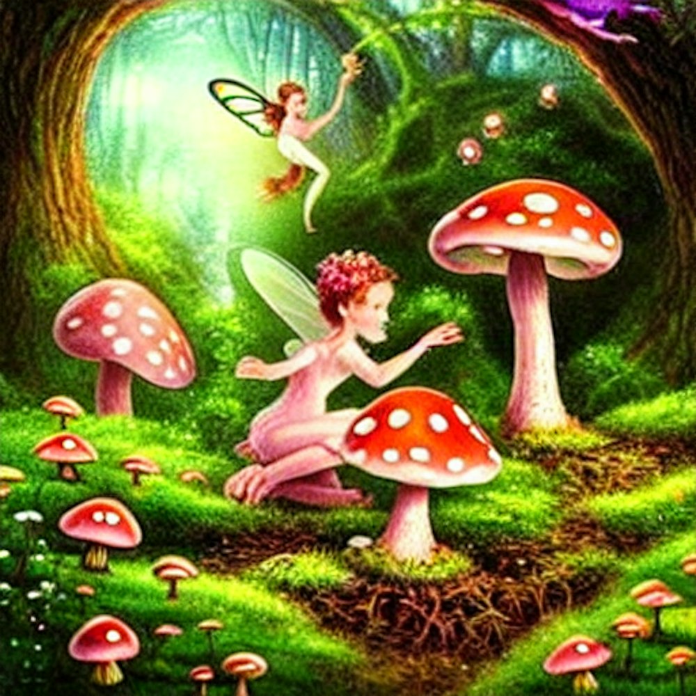 Fairies in a mushroom garden