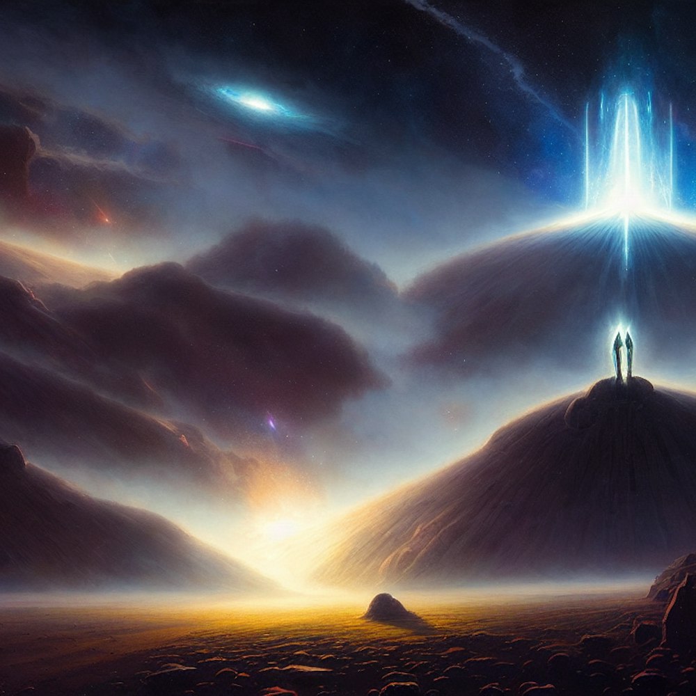 Gods of creation, heaven, surreal, space, light rays, galaxy, space, stars, comet, Greg Rutkowski, James Gurney