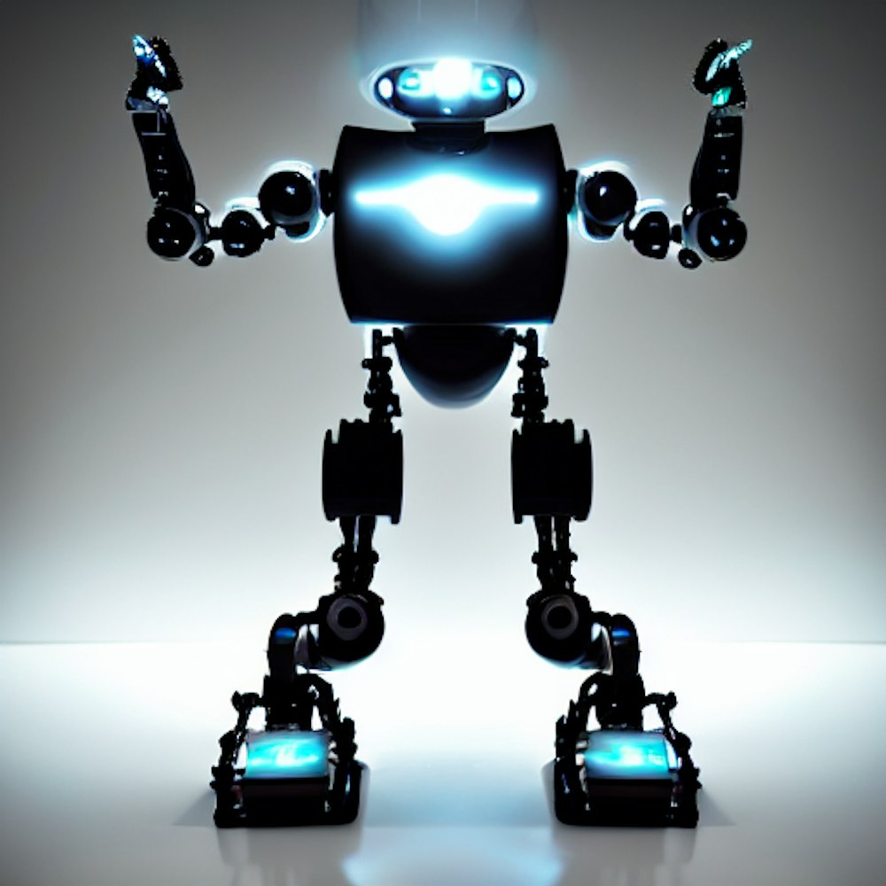 a futuristic robot that incorporates the number 4
