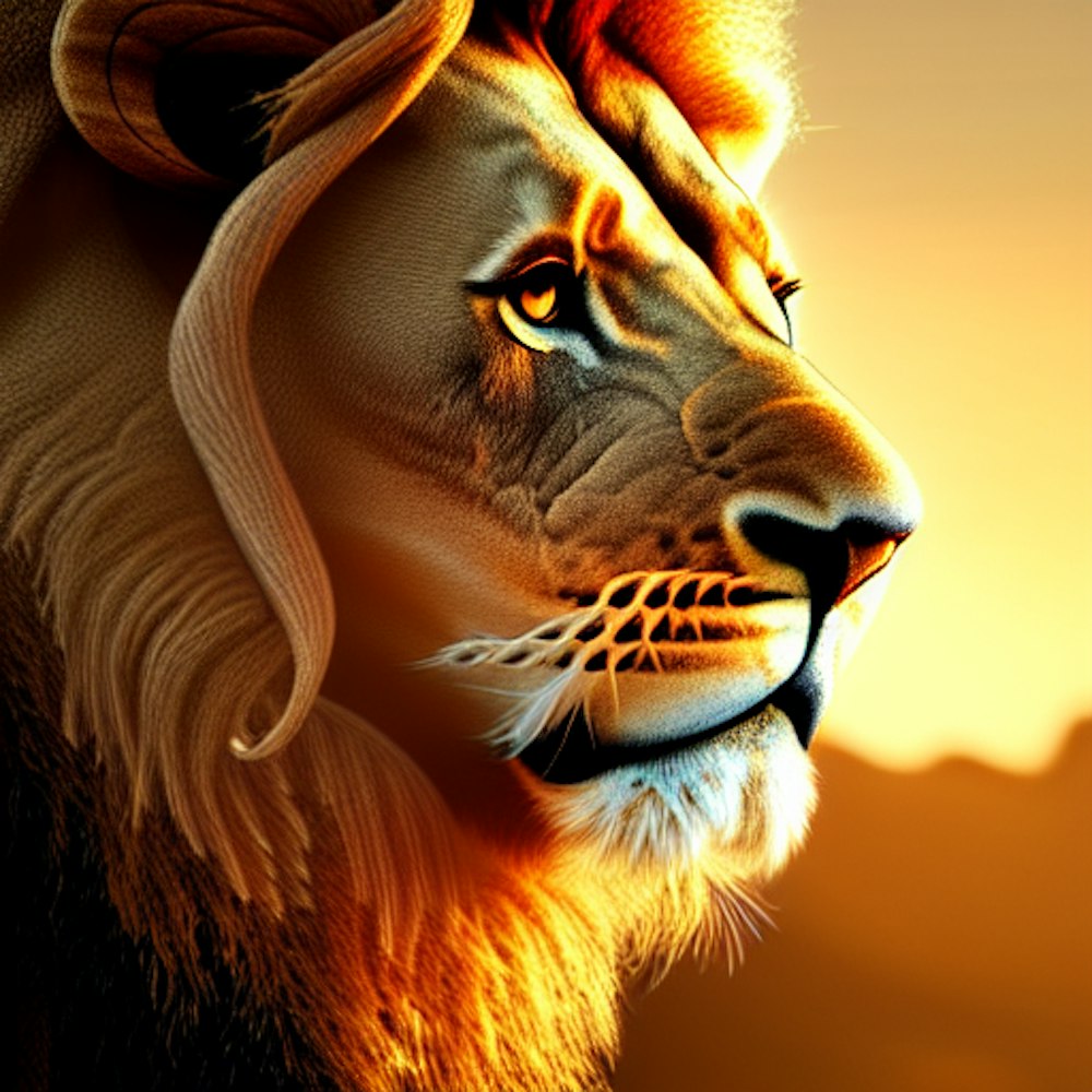Lion awakening at sunrise