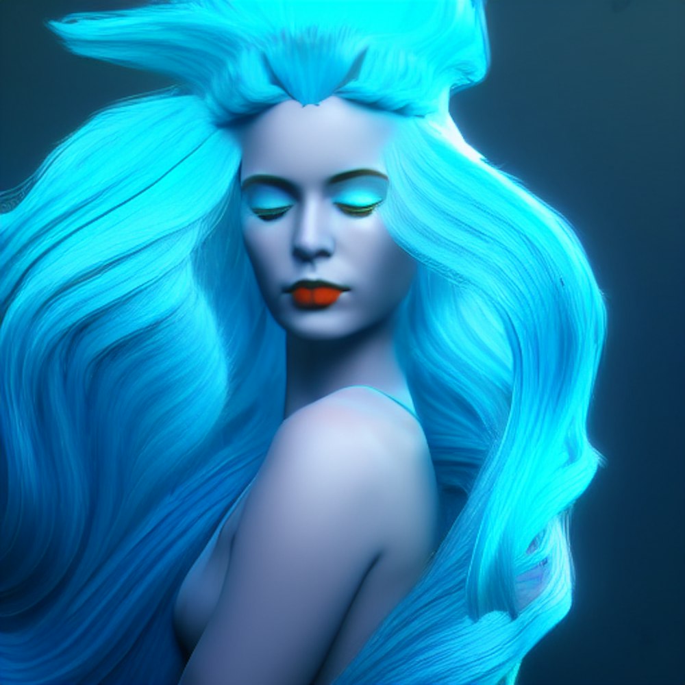 Mermaid underwater blue hair tails sad complementary colors, 8k resolution trending on Artstation Unreal Engine 5 a masterpiece, dark fantasy concept, dynamic lighting