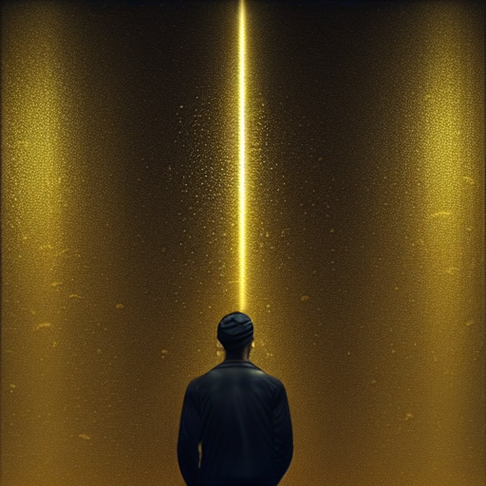 man standing in raining gold realistic