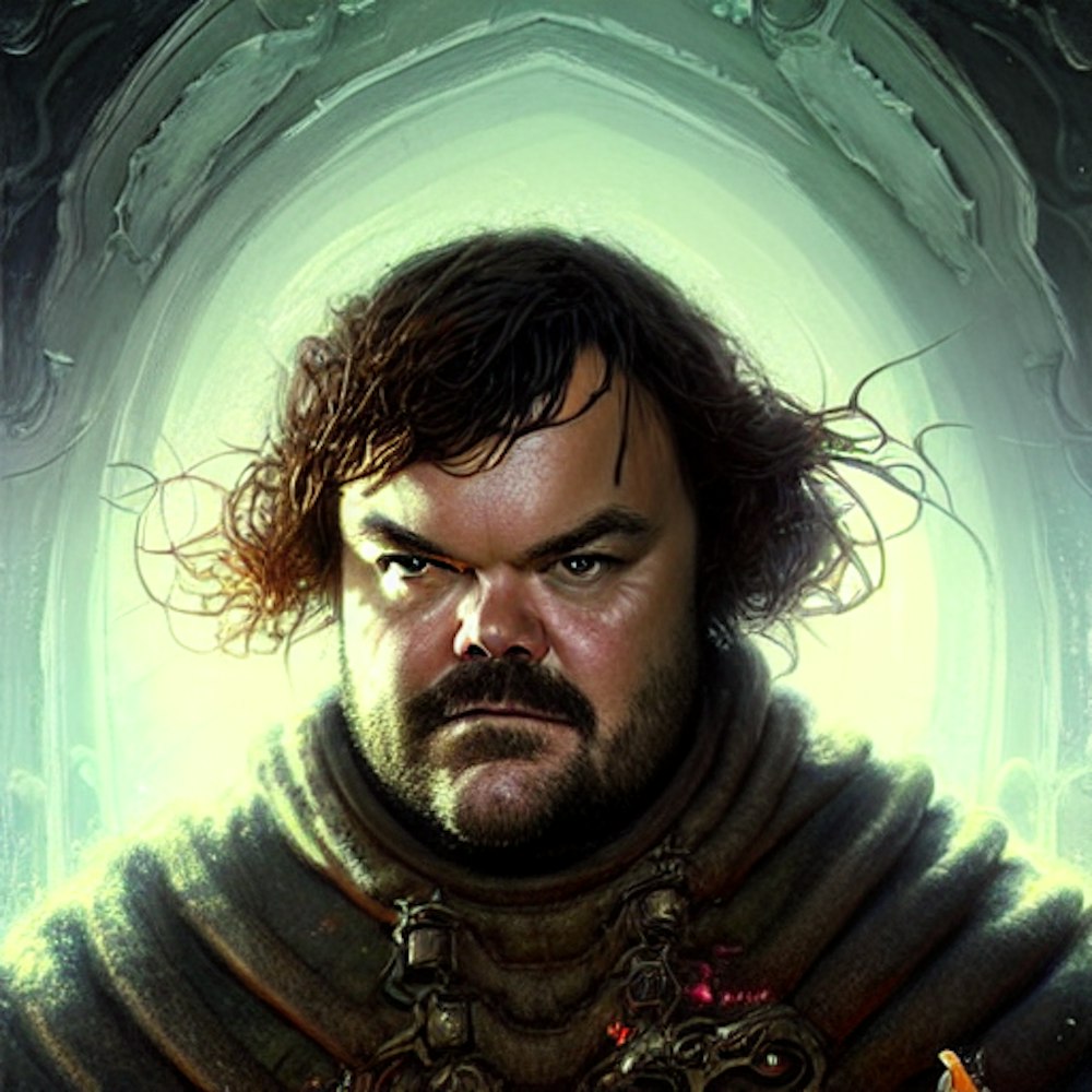 a portrait of actor Jack Black, fantasy character portrait, Graveyard landscape, ultra realistic, cinematic, concept art, wide angle, intricate details, hologram, highly detailed by greg rutkowski, aaron horkey, gaston bussiere