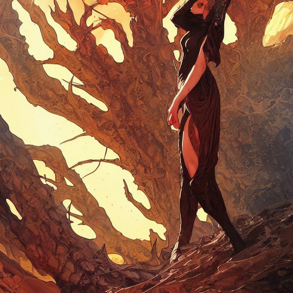 desert. burned trees, planet, intricate, Centered. Dittmann, Artgerm, WLOP, Mucha. Concept art. Planets, Space. Dynamic lighting. Regal. Bagshaw, Chevrier, Ferri, Kaluta, Minguez, Johansson.
