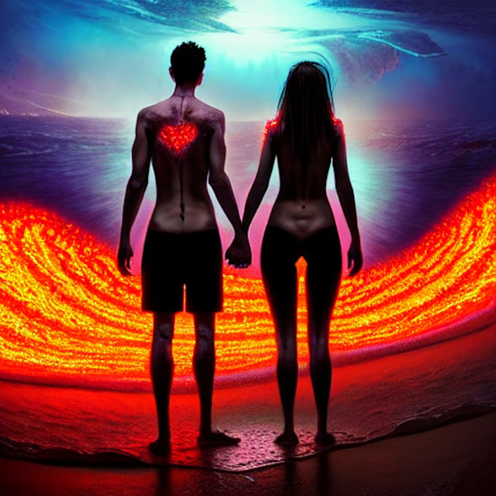 couple holding hands dark beach