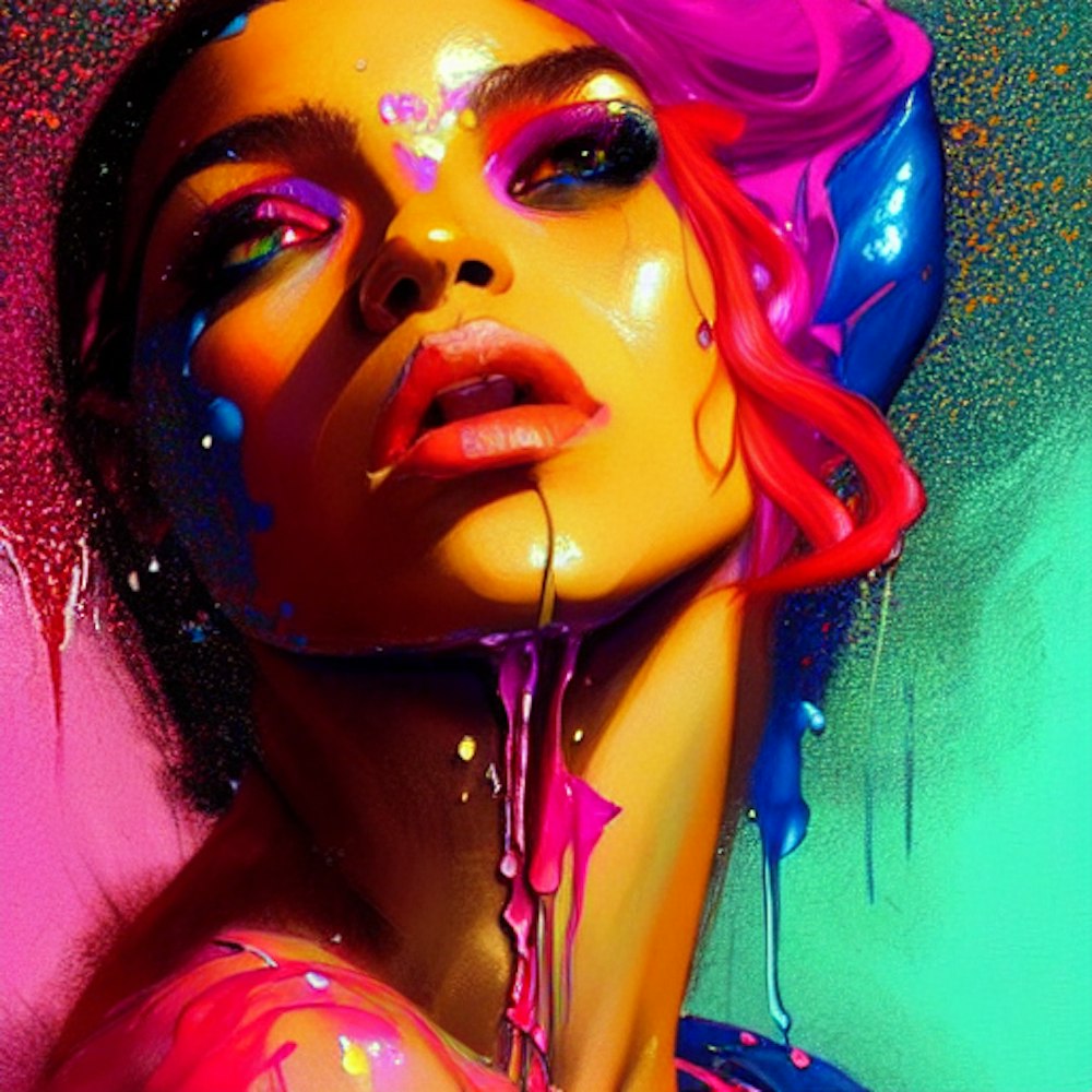 Fluorescent feeling, neo soul girl, dance, love, sex, beautiful painting with colourful by greg rutkowski, with drip and splash paint effect
