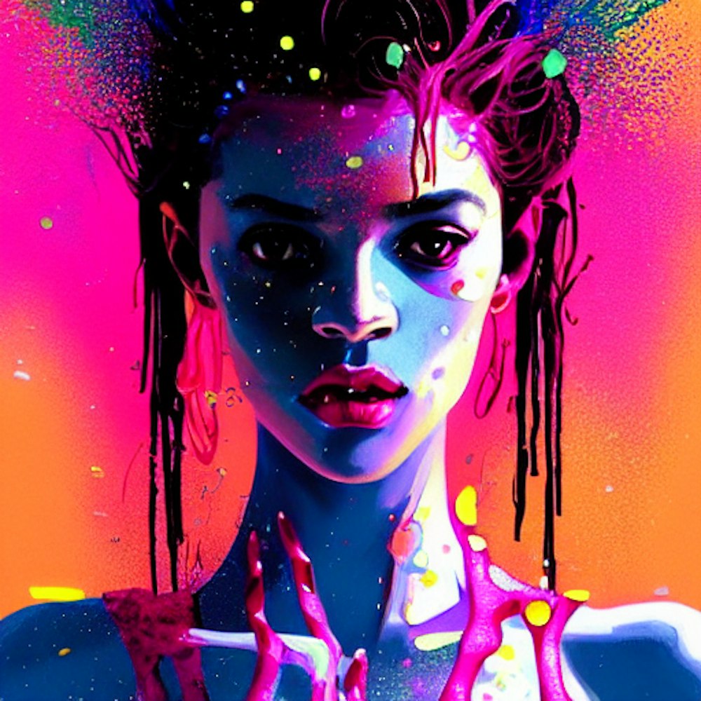 Fluorescent feeling, neo soul girl, dance, love, sex, beautiful painting with colourful by greg rutkowski, with drip and splash paint effect
