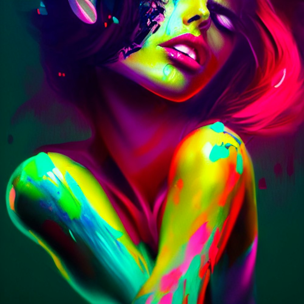 Fluorescent feeling, playmate, dance, love, sex, beautiful painting with colourful by greg rutkowski, with drip and splash paint effect
