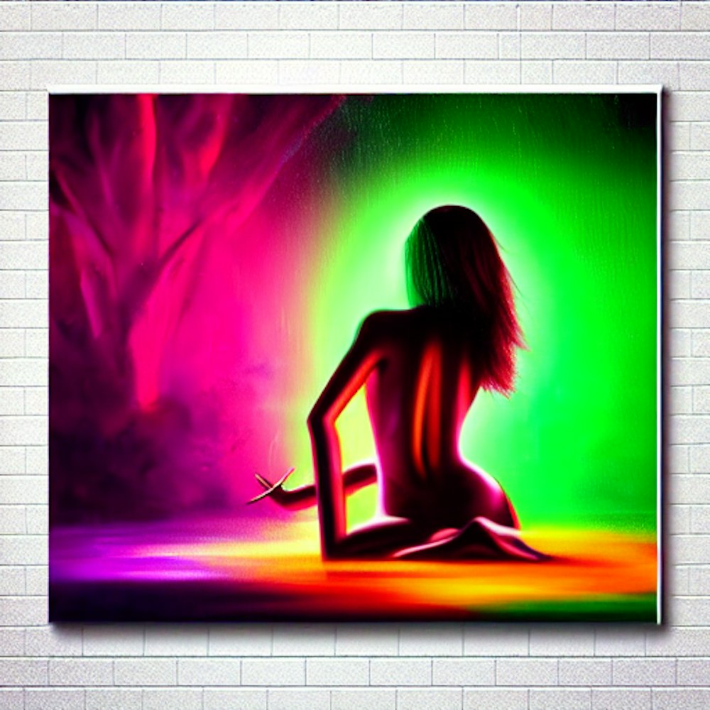Fluorescent feeling, playmate sex, dance, love, beautiful painting with colourful by greg rutkowski, with drip and splash paint effect
