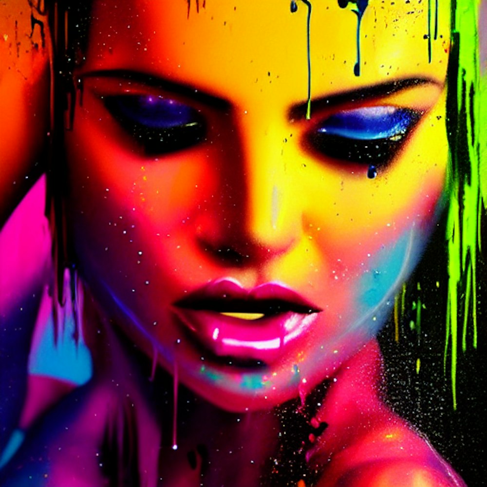 Fluorescent feeling, playmate sex, dance, love, beautiful painting with colourful by greg rutkowski, with drip and splash paint effect