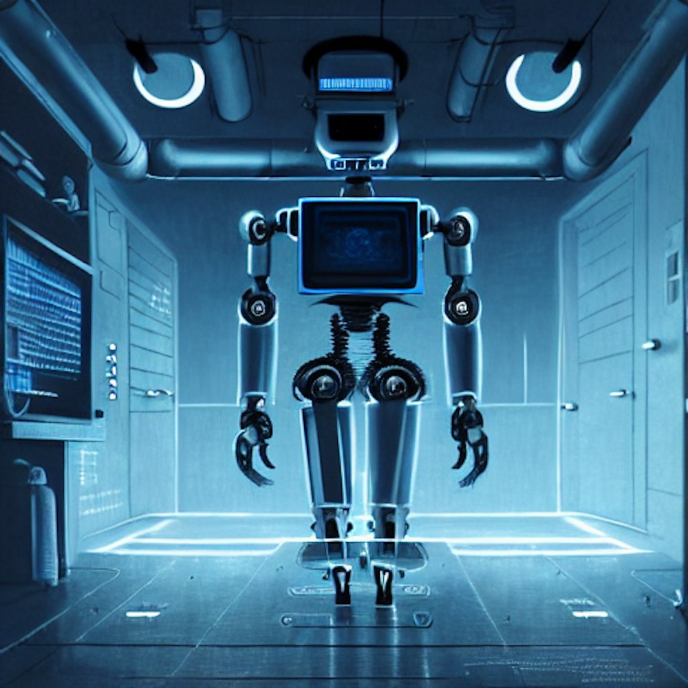 Drawing of an A.I robot programmed by a developer, Drawing Robot, horror, vignette, painting, insanely detailed, 8K, Ultra HD, volumetric lighting, blue color palette, concept art by wlop, greg rutkowski