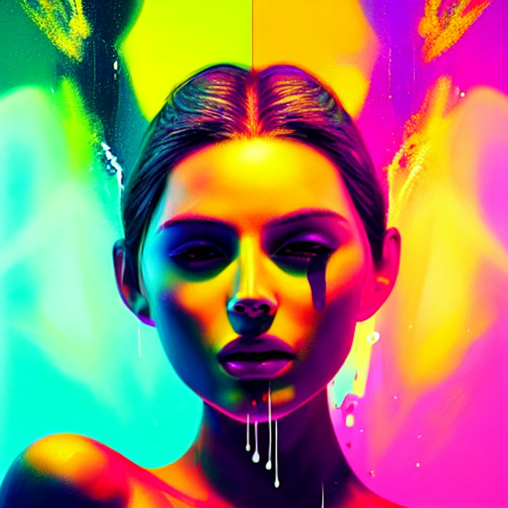 Fluorescent feeling, playmate sex, dance, love, beautiful painting with colourful by greg rutkowski, with drip and splash paint effect