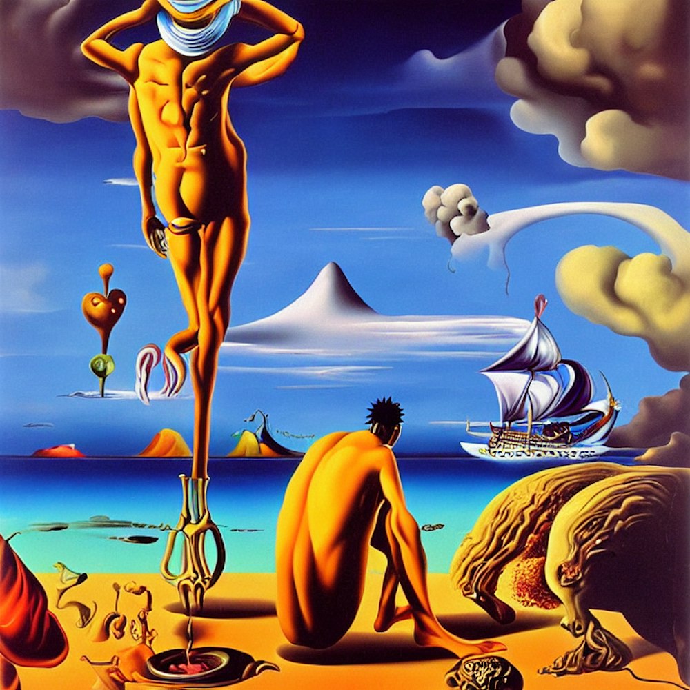 The one piece surrealism Salvador Dali matte background melting oil on canvas synthwave neon retro